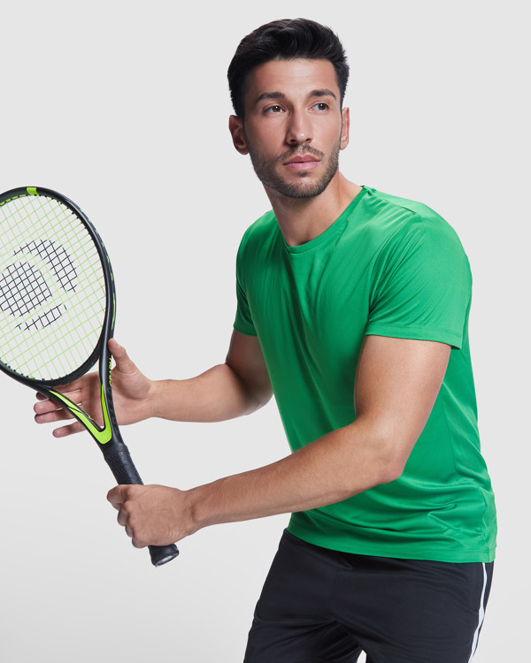 Maglietta tecnica traspirante a maniche corte. Girocollo con copri cuciture in tono.