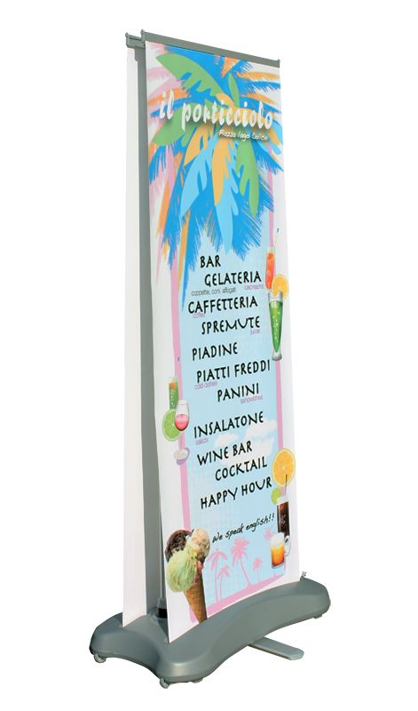 In alluminio, disponibile nel formato 85×200 stampato su pvc 510gr.